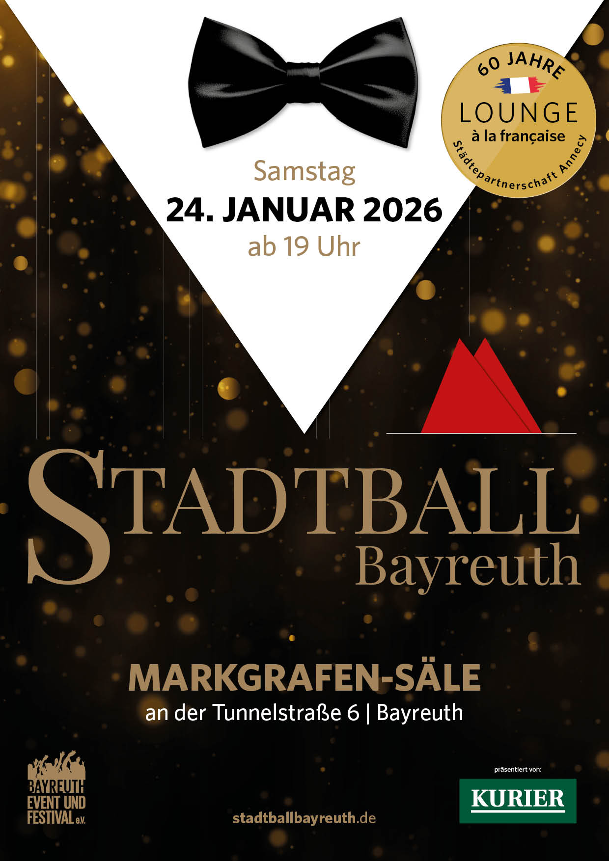 Beim Stadtball startet in Bayreuth aber auch das Jahr der Jubiläen: Freuen Sie sich auf eine französische Lounge mit exquisiten Köstlichkeiten und französischer musikalischer Untermalung anlässlich 60 Jahre Städtepartnerschaft Bayreuth-Annecy. Und natürlich wird auch ein Festspiel-Akzent gesetzt, schließlich werden die weltberühmten Richard-Wagner-Festspiele 150 Jahre alt.
